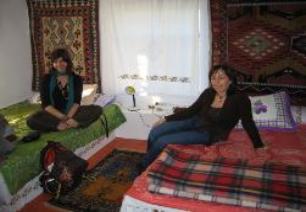 ACCOMODATION Our comfortable, airy guest rooms have great views of the countryside. We decorated in Turkish style, with kilims created locally covering our floors and walls. Double and single beds are available. We invite you to stay with us at Caravanturkey Cultural Center, a place with the special, warm welcome of Turkish hospitality! |