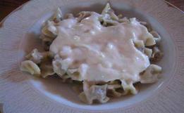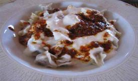8. For vegetarian manti: In a pan melt butter, add oil and boil for1 minute. Pour sauce over pasta